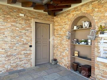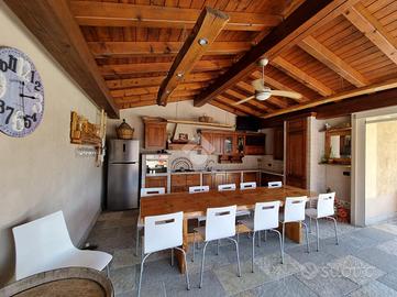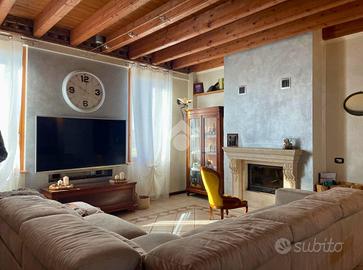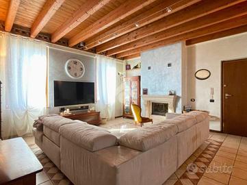 In tranquilla zona residenziale, appena fuori dal paese ma comoda a tutti i principali servizi, proponiamo in vendita una spaziosa porzione di casa indipendente con piscina esclusiva, ideale per chi desidera ambienti ampi, privacy e comfort per tutta la famiglia. L'accesso alla proprietà avviene tramite un cancello indipendente di recente installazione che conduce al cortile privato. Qui troviamo una splendida piscina di 40 mq, perfetta per rilassarsi nelle giornate estive o trascorrere piacevoli momenti in compagnia. Dal portone d'ingresso si accede al vano scale che accompagna ai piani superiori. Il primo piano si distingue per gli ambienti generosi e ben distribuiti: il soggiorno, ampio e luminoso, è impreziosito da un camino a legna ventilato che rende l'atmosfera calda e accogliente nei mesi invernali. La cucina, collegata in open space, è anch'essa di ottime dimensioni e perfetta per la vita quotidiana. Da qui si accede a un terrazzo coperto, uno spazio ideale per pranzi, cene e grigliate con amici e familiari. La zona notte è ben separata e comprende una camera matrimoniale, due camere doppie e due bagni, di cui uno attualmente adibito a lavanderia, offrendo così funzionalità e comfort per tutta la famiglia. Salendo al secondo piano troviamo una mansarda di notevole metratura, uno spazio versatile e accogliente, perfetto come zona relax o intrattenimento. Attualmente è organizzata con divano e proiettore per piacevoli serate cinema in compagnia. Il piano dispone inoltre di un ulteriore soggiorno, un bagno con doccia idromassaggio, un locale adibito a palestra e deposito e un'ulteriore camera matrimoniale, ideale anche per gli ospiti. Sul retro della casa sono presenti un box auto coperto e un posto auto esterno di proprietà, garantendo praticità e comodità. L'immobile, costruito nel 1972, è stato ristrutturato internamente nel 2000 e presenta il tetto completamente riqualificato nel 2006. È dotato di riscaldamento autonomo a radiatori, due stufe a pel