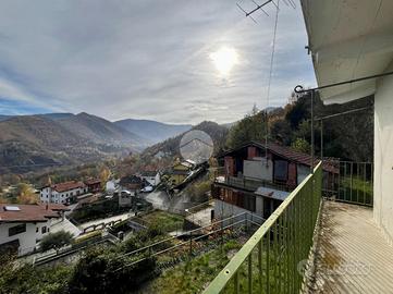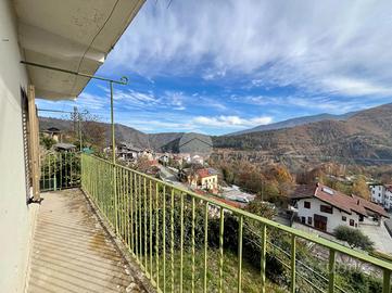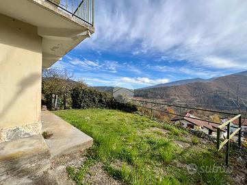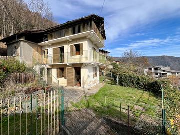 A Traves, in posizione panoramica e soleggiata, casa semi indipendente su tre livelli con giardino privato pianeggiante di circa 40 metri quadri, ideale per stare all'aperto senza richiedere troppa manutenzione, e ampio orto frontale.