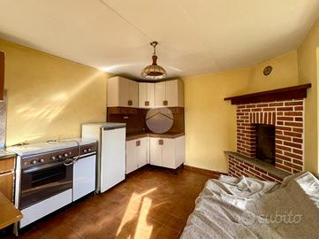 L'immobile presenta al piano terreno la cucina abitabile con camino a legna; il piano primo, accessibile tramite scala esterna, è composto dalla camera da letto matrimoniale e dal balcone che la circonda sui lati sud-est e sud-ovest; concludono la vendita il bagno finestrato completo esterno al piano terreno ed il sottotetto non abitabile al secondo piano, utilizzabile come sgombero.