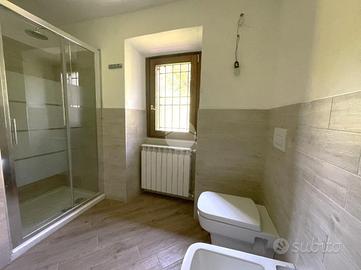 Un disimpegno conduce al primo bagno finestrato di servizio con doccia. Esternamente troviamo l'area esclusiva, perfetta per pranzi all'aperto, momenti di relax o per vivere la natura circostante in totale privacy.