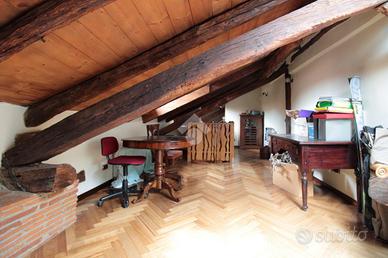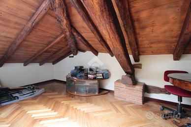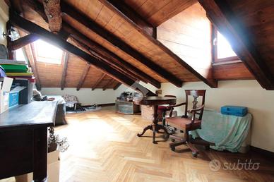 L'abitazione di oltre 120 mq è posta su due livelli, al primo più secondo ed ultimo piano. La scala esterna dà accesso al primo piano così suddiviso: ingresso, zona giorno composta da doppio soggiorno, cucina abitabile e primo bagno finestrato con vasca idromassaggio. Il disimpegno conduce alla zona notte divisa in camera matrimoniale, cameretta con balcone e secondo bagno con doccia e lucernario. La scala interna conduce al secondo livello di circa 25 mq ad uso soffitta.