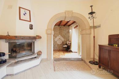I pavimenti sono in gres porcellanato effetto legno ed in parquet a spina di pesce italiana. Il primo soggiorno presenta parquet a quadrotte, oltre a travi in legno e pareti con pietre e mattoni a vista. Il secondo soggiorno è dotato di camino in muratura.
