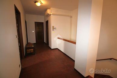 Attraverso una comoda scala interna accediamo al piano superiore dove si distribuisce la zona notte composta da due camere matrimoniali rifinite in parquet, due camere singole, un grande bagno con doccia e vasca e un secondo bagno di servizio.