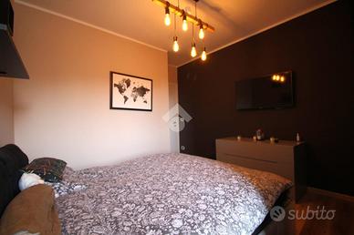 La zona notte, al piano superiore, ospita due camere da letto: una matrimoniale e una seconda camera più raccolta, arricchita da balcone con una vista stupenda sul castello, uno scorcio davvero unico. Completa il piano il bagno finestrato, comodo e ben rifinito.