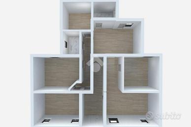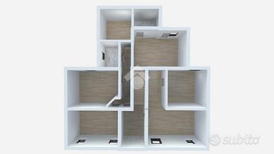 La distribuzione degli spazi permette una ristrutturazione dell'abitazione che può consentire di creare un totale di quattro bilocali.
