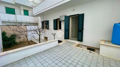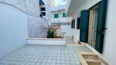 TORRE SAN GIOVANNI: Nel cuore della marina di Ugento, a pochi passi da Corso Annibale, proponiamo in vendita una splendida abitazione al piano terra composta da un ampio salotto, disimpegno, due camere da letto matrimoniali, cucina abitabile e bagno. La proprietà è arricchita da uno spazio esterno antistante, ideale come area di accoglienza, parcheggio o zona relax e da uno spazio esterno retrostante, perfetto per momenti all' aperto, giardino o area servizi. L' immobile possiede una cantina al piano seminterrato di circa 30 mq composta da due locali.