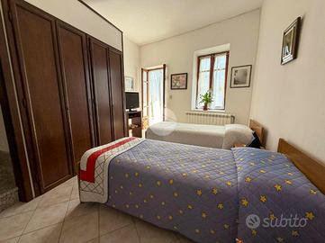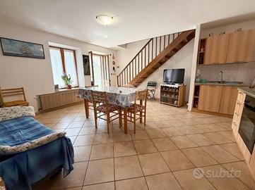 Con una splendida vista panoramica su tutta la vallata ed inserita in un contesto di borgata, soluzione semindipendente con ampio cortile e terreno privato.