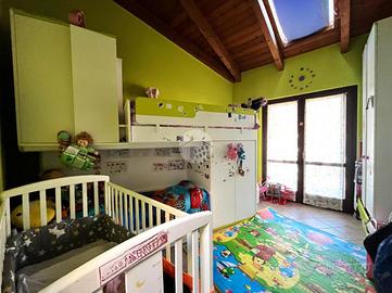 Il piano è valorizzato dal suggestivo tetto in legno a vista, che conferisce calore e autenticità agli spazi.