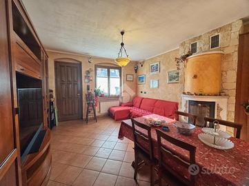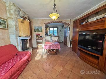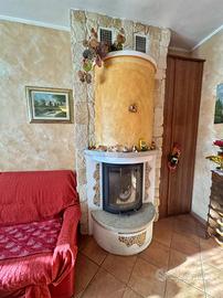 * Piano terra: ingresso su soggiorno living con angolo cottura, ambiente valorizzato dalla presenza del camino termoventilato a legna.