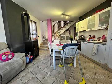 In una piccola borgata situata nella zona bassa del paese, in posizione tranquilla e molto soleggiata, casa semindipendente dotata di spazio esterno privato, ideale per momenti di relax e per accogliere l'ingresso all'abitazione.