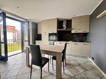 L'ingresso introduce in un soggiorno di generose dimensioni, ben illuminato e impreziosito da camino a legna. La cucina è abitabile e separata, con accesso diretto al balcone. Sullo stesso piano è presente un bagno con box doccia.