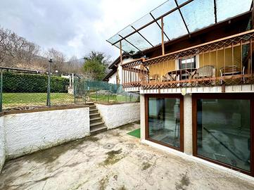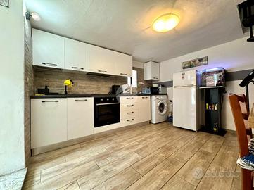 L'abitazione dispone di due comodi accessi: il primo al piano terreno conduce direttamente all'accogliente taverna con suggestive volte in mattoni a vista e camino, un ambiente caldo e conviviale perfetto per momenti di relax o per ricevere ospiti. Attraverso una funzionale scala interna si raggiunge la zona giorno, dove troviamo una cucina luminosa con affaccio sulla parte terrazzata e sul verde di proprietà, creando una piacevole continuità tra interno ed esterno.