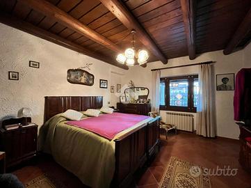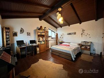 Dal soggiorno si accede ad un ampio disimpegno che collega una prima camera da letto matrimoniale, un bagno dotato di doccia e la scala che porta al piano primo dove si sviluppa la zona notte.