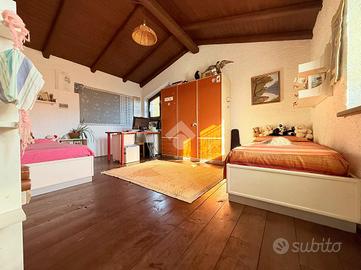 Qui sono presenti due camera da letto con tetto a vista in legno e il secondo bagno che serve il piano.