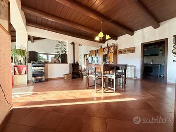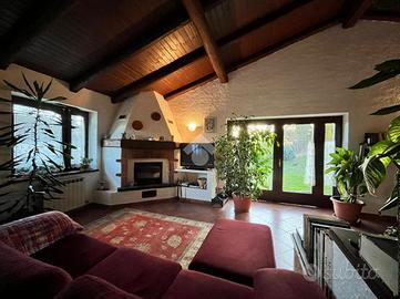 L'ingresso al piano terreno è sulla zona giorno composta da cucina abitabile e da un ampio soggiorno impreziosito dalla presenza di un camino angolare, di grandi finestre e accessi esterni che permettono un'ottima illuminazione naturale.