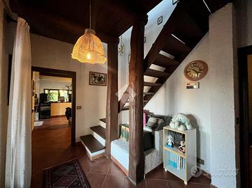 Immersa nel verde, del comune di Alice Superiore, casa semindipendente libera su tre lati con giardino di circa milleottocento metri quadrati.