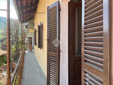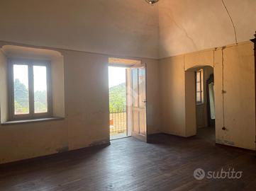 Questa antica casa Piemontese si sviluppa su tre piani abitattivi. Al piano terreno, vi sono alcuni locali tecnici, cantina, lavanderia, e depositi. La scala interna in pietra conduce al piano primo dove troviamo cucinotto, sala pranzo con accesso al balcone, un ampio soggiorno con stufa e soffitto con volta. Nel piano è già presente una prima camera da letto di ottime dimensioni ed il bagno con vasca. Al secondo piano vi sono tre comode camere da letto matrimoniali, tutte con affaccio sul balcone con vista. Il sottotetto completa questo immobile. Attualmente la casa è riscaltata da stufe collegate alle canne fumarie e vi è un boiler elettrico per l'acqua. Adiacente all acsa vi è il giardino privato di circa 340mq, a poca distanza dalla casa vi è un rustico, con terreno circostante di circa 500mq. Compresi nella vendita vi sono altri terreni più distanti per un totale di circa 4.000mq di natura boschiva.