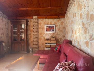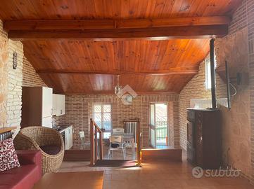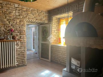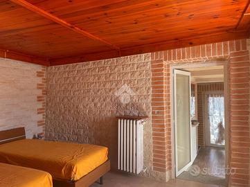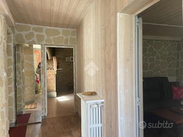 Questo immobile dispone di un'ottima esposizione e una splendida vista sulla pianura e sulle montagne. Si sviluppa su tre piani abitativi oltre alle cantine. Al piano rialzato è situato un primo salottino ed un locale ad uso taverna con forno per le pizze, quelo locale è caratterizzato da una splendida porta con vetro su decorato. La scala interna conduce al primo piano dove è possibile trovare l'ampio bagno con doccia e la spaziosa camera matrimoniale, a completare il piano il balcone. Al secondo ed ultimo piano troviamo la zona più caratteristica della casa, l'ampia zona giorno con soffitto in legno di pino, coibentato. La cucina è abitabile e il soggiorno luminoso con balcone dotato di vista. Al piano interrato vi sono tre cantine, una delle quali usata come vano caldaia. La casa è stata oggetto di ristrutturazione nel 2008 e sono stai rivisti tutti gli impianti. Attualmente il riscaldamento è a metano, con caldaia a condensazione programmabile attraverso un'applicazione. Vi sono anche due stufe a pellet, una nella zona giorno ed una nel vano scala. Gli infissi sono dotati di doppio o triplo vetro.