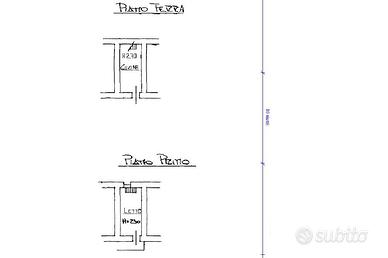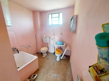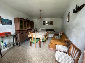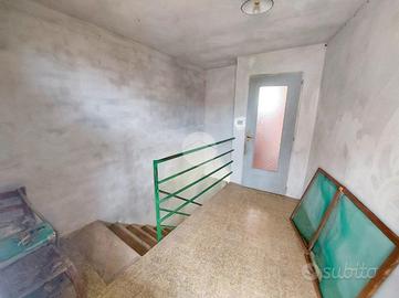 Al piano terra vi sono tre ambienti, non collegati internamente tra loro, una cucina abitabile, il soggiorno e un altro locale, ora accatastato come cucina, ma potrebbe essere una camera da letto. Alla sinistra vi è un vano che tramite una scala comoda fa accedere al piano superiore con un disimpeggno e un bagno finestrato. Proseguendo tramite il ballatoio vi sono tre camere da letto. Tutti gli ambienti sono spaziosi e consentono, in seguito a ristrutturazione, la possibilità di realizzare soluzioni diverse poichè la struttura si presenta allo stato originale, conservando le caratteristiche della case di corte. Il tetto dell'immobile principale si presenta in buono stato poichè è stato rifatto nel 1990.