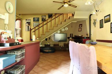 La cucina è abitabile, calda nella stagione invernale grazie alla presenza di un camino e molto spaziosa; un' altra scala conduce al primo piano.