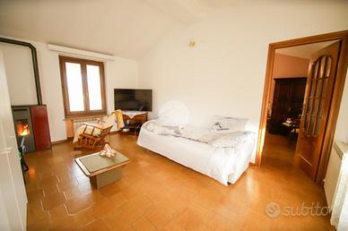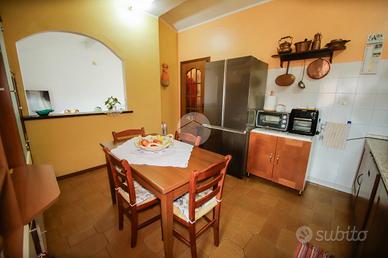 In zona semicentrale, casa bifamigliare composta da due appartamenti. Il piano terrerno si caratterizza da un soggiorno, una cucina abitabile, un ripostiglio ed un bagno munito di doccia. Il primo piano, accessibile da scala esterna, accoglie due camere da letto matrimoniali, un ripostiglio, un bagno dotato di vasca ed un ampio balcone con terrazzo coperto. Il secondo piano definisce la seconda unità immobiliare composta di una cucina abitabile, di un soggiorno, da una camera da letto matrimoniale e di un bagno munito di doccia. A completare la soluzione un box auto singolo, una cantina ed una legnaia. L'immobile gode del riscaldamento autonomo.
