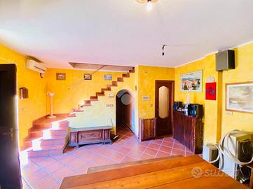 Il piano terra si compone di salone con camino a legna, cucina abitabile, bagno e zona forno mentre al piano superiore vi sono tre camere da letto di diversa dimensione, bagno e balcone.