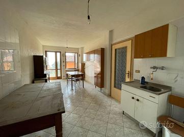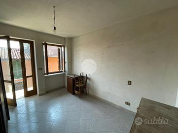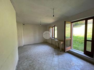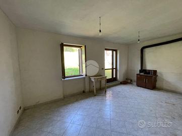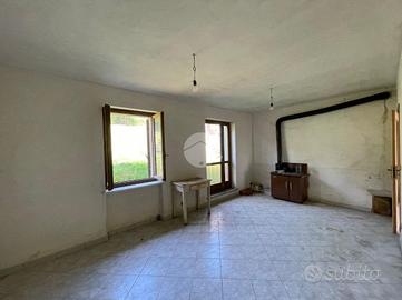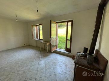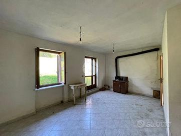 Al piano primo accessibile tramite scala esterna si sviluppa il piano abitativo principale con ingresso su soggiorno living con angolo cottura, adiacente una camera dalle grandi dimensioni che all'occorrenza potrebbe essere divisa, ricavando due stanze, la prima andrebbe ad ampliare la zona giorno con porta finestra che conduce al giardino privato di settecentocinquanta mq, la seconda andrebbe a realizzare una cameretta con finestra.