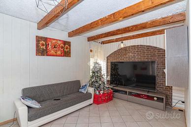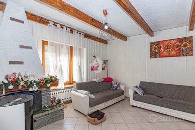 In posizione centrale, comodo ai servizi di prima necessità che il Paese offre, casa semindipendente libera su tre lati con cortile e giardino privati, senza servitù di passaggio.