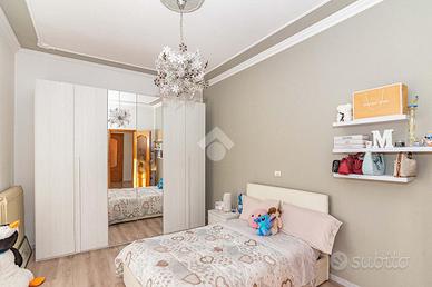 Già rivista nella quasi totalità, l'abitazione si dispone su due livelli di circa 102 mq per piano.