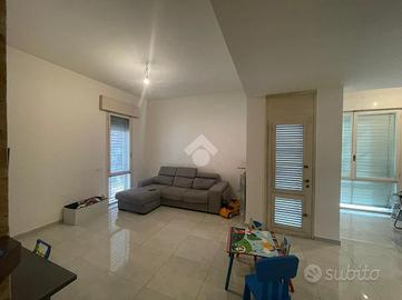 Al piano terra si trova la zona giorno, composta da un ampio e luminoso soggiorno con caminetto -- elemento che conferisce calore e accoglienza all'ambiente -- separato dalla cucina abitabile. Completa il piano un bagno finestrato dotato di lavabo, wc e bidet.