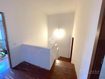 Salendo al piano superiore, la zona notte è composta da tre camere (una matrimoniale e due singole), tutte caratterizzate da ottima esposizione solare e buona luminosità per tutto l'arco della giornata. Sullo stesso livello si trova un secondo bagno finestrato, di generose dimensioni e completo di box doccia.