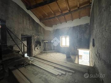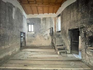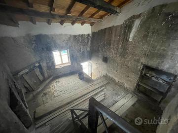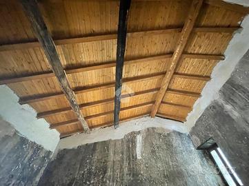 La casa si sviluppa su tre livelli collegati tra loro da un'autentica scala in legno d'epoca. Al piano terra si trovano due ambienti con finestre, accoglienti e ricchi di potenziale, oltre a un locale di servizio. Salendo al primo piano si accede a due stanze, tra cui una magnifica sala a doppia altezza dotata di camino, ideale come salotto padronale o spazio conviviale, e un'altra camera con doppio affaccio, luminosa e ben arieggiata. L'ultimo livello ospita una terza stanza, riservata e tranquilla, perfetta come studio o zona notte, con dettagli che ne esaltano il carattere storico.