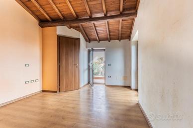 Il secondo piano ti sorprenderà con una seconda camera matrimoniale, un moderno bagno con doccia e un incantevole terrazzo privato, ideale per godere di momenti all'aperto. I soffitti con travi in legno e il caldo parquet conferiscono a ogni ambiente un'atmosfera accogliente e raffinata.