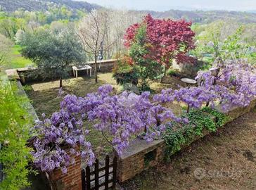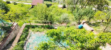 VIALFRE' - La casa con cortile e giardino di proprietà di circa 300 mq con orto e frutteto è situata nella zona centrale del paese e in posizione da cui si può godere di una suggestiva vista sulle montagne e sul verde circostante.