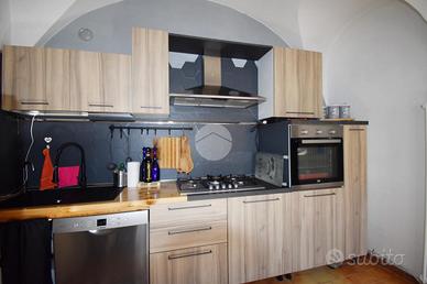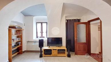 Il piano terreno, con infissi in legno con doppio vetro, è composto dall'ingresso, dalla cucina, dalla sala da pranzo con camino a legna con ventilazione forzata canalizzata, dal soggiorno con il vano scale e dal bagno con vasca.