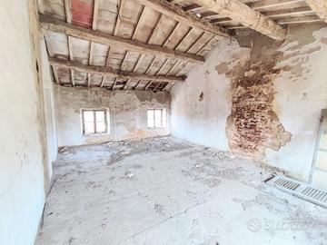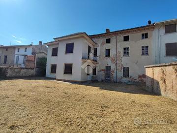 La proprietà si trova in posizione comoda rispetto al centro del paese, è di generosa metratura e divisa in tre abitazioni, corte interna e ampio terreno edificabile.La casa degli inizi '900 è su tre livelli più piano interrato. L'ingresso è sul vano scala, imponente ed in pietra originale. Il soggiorno, ampio e luminoso, si collega al tinello e alla cucina. Un ampio locale sgombero è al piano intermedio, mentre le due camere matrimoniali sono al primo piano. Altre tre camere sono al secondo piano, il tetto qui è a vista e i soffitti alti. Il piano interrato è diviso in due locali: l'ampia cantina con botti originali in cemento e soffitto a volte, e la ghiacciaia, tipica della zona con pozzo. La casa necessita di ristrutturazione in tutte le sue parti, ma recuperando le caratteristiche tipiche dell'epoca( ad esempio i solai e travi in legno oppure i pavimenti e le tavelle in cotto), si potrebbe creare una unità abitativa di grande suggestione. L' abitazione degli anni '50 è divisa in due appartamenti completamente autonomi e indipendenti tra loro. Entrambi gli alloggi hanno ingresso sul disimpegno, il soggiorno ampio con cucinotto, due camere da letto matrimoniali e il bagno finestrato. Anche questa abitazione necessita di interventi di ristrutturazione. Il box auto e la tettoia sono all'interno della corte che è facilmente accessibile tramite l'ingresso carraio ed è ampia tanto da potervi creare anche diversi posti auto. Il terreno edificabile è di circa 1000 mq. La sua posizione e la sua metratura può rendere possibile la costruzione di un'altra importante unità abitativa oppure semplicemente la realizzazione di un ampio giardino e spazio ricreativo.