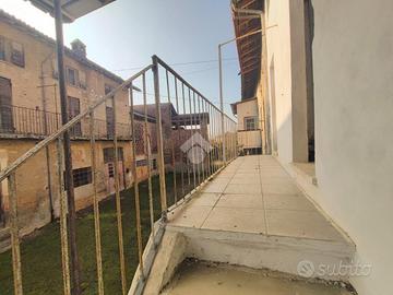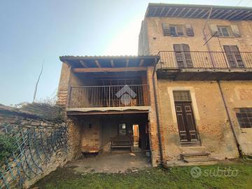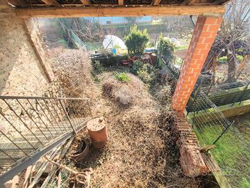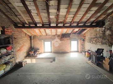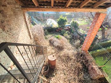La casa si trova in centro paese all'interno di una corte. Il cortile è di proprietà, ha al suo interno la vecchia stalla con portico con tetto e solette rifatti. Il giardino è grazioso e privato, ideale per una area di tranquillità. La casa è disposta su più livelli. La cucina è al piano terra, il salotto ed il tinello sono adiacenti. La scala per ragggiungere il piano superiore attualmente è esterna, le camere qui sono due, una matrimoniale ed una più piccola. Il sottotetto è alto ideale per crearvi una terza camera, finestrato e con tetto a vista. La cantina è caratteristica ed originale, era infatti la vecchia raccolta delle acque del paese.