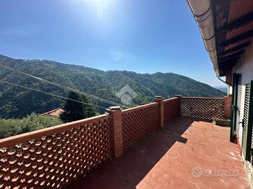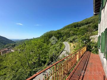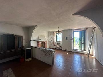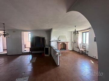 Al primo piano incontriamo doppio soggiorno con suggestivo camino,cucina abitabile con accesso diretto al balcone e bagno finestrato.