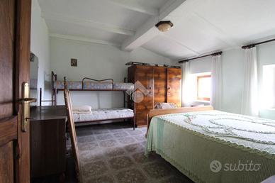 GOVA: Frazione di Villa Minozzo, in zona estremamente tranquilla, porzione di casa da terra e cielo rivolta verso sud ed est al sole per buona parte del giorno, con terreno e basso servizio. Composta da: Piano terra: cantina di 40 mq. ; Piano primo: cucina grande, sala con camino e due balconi, bagno nel piano ammezzato; piano secondo con due camere grandi; piano sottotetto: due camere grandi, con altezza minima 2,2 mt.. Piccola area cortiliva di proprietà esclusiva, area verde in comune e lotto di terreno di 540 mq. a 15 metri dall' ingresso. Possibilità di ulteriore terreno agricolo di 4700 mq. Basso servizio, ex stalla utilizzabile a posto auto coperto, con sottostante ex stalla a volti, ulteriore cantina e portico il tutto in buone condizioni con tetto rifatto. Casa abitabile in buone condizioni con riscaldamento a radiatori senza dissesti o crepe. Distanze: Quara 5 km; Febbio 11 Km, Villa Minozzo 13 km, Roteglia 35 km.