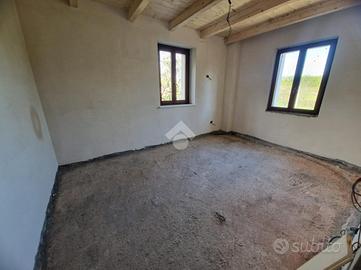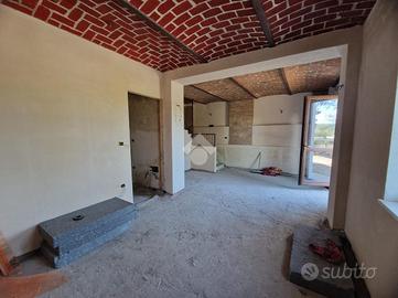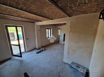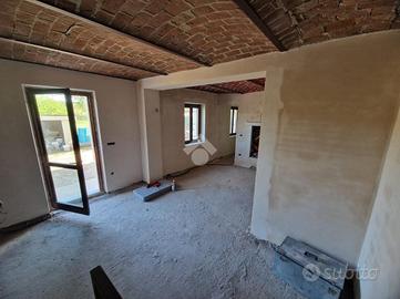 La soluzione indipendente su tre lati è sita nelle vicinanze del centro paese di Villafranca d'Asti. Dal portone in ferro si accede all'interno del giardino privato in cui è posizionato un comodo box auto. Il portoncino vetrato si apre sulla zona giorno living con camino a vista e la cucina abitabile rimane separata, con accesso diretto al giardino, nel disimpegno di trova il bagno quadrato del piano. La scala in muratura conduce al primo piano in cui si trovano due ampie camere da letto e il bagno finestrato con gli attacchi per la lavatrice. La casa è in fase di ultimazione e possono essere scelti dal cliente i rivestimenti e le pavimentazioni. Allacciato al gas metano e alla fognatura comunale. con già gli infissi in pvc effetto legno con doppio vetro. Il riscaldamento è a pavimento e ci sono le predisposizioni per i panelli fotovoltaici
