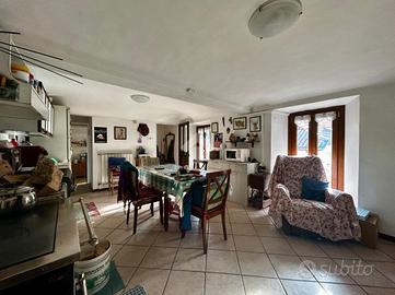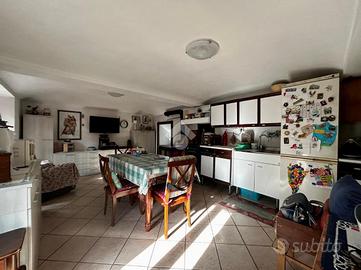 La casa semindipendente si trova in una zona centrale, ed è quindi comoda a tutti i servizi del paese. L'ingresso è al primo piano dove vi è una scala interna in muratura che accede al piano superiore, dove troviamo l'ampia cucina abitabile, che divide la camera da letto con il proprio bagno finestrato con box doccia, dal soggiornino. Tramite una scala interna si accede al piano inferiore dove troviamo la zona notte, composta da 3 camere da letto ed il disimpegno che divide lo studio dal bagno con vasca.