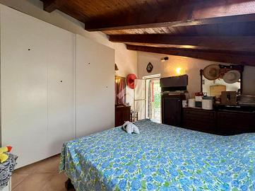 La casa, libera su tre lati, ha l'ingresso al piano terra dal cortile privato nel soggiorno ed adiacente ad esso vi è la cucina abitabile; tramite una scala interna si accede al piano superiore dove troviamo la prima camera matrimoniale, con l'affaccio sul balcone, ed un bagno finestrato; infine la parte abitativa ha una seconda camera ed un'altro bagno con doccia.