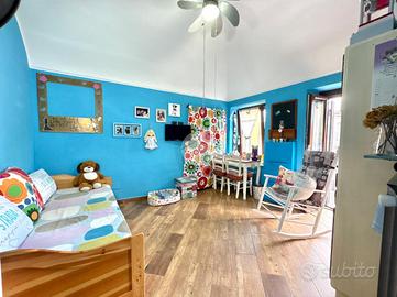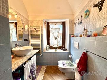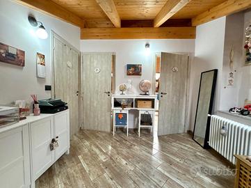 L'immobile, risalente tra il 1700 ed il 1800, è disposto su tre livelli, all'interno di una tranquilla corte di sole tre unità abitative indipendenti. Dall' area esterna privata, si accede alla zona giorno composta dal luminoso soggiorno, dotato di camino a legna, dalla cucina a vista rifinita in muratura e dal bagno di servizio; ogni dettaglio è stato studiato per rendere l'ambiente accogliente e rilassante, perfetto per serate in famiglia o con gli amici. Dalla cucina si ha accesso al locale interrato, ristrutturato nel 2020, ed utilizzato come tavernetta. Tramite comoda scala interna in pietra di luserna, originale dell'epoca, accediamo al primo piano composto da una cabina armadio/studio (attualmente adibita a palestra), una camera da letto con sfogo sul balcone con affaccio interno cortile, ed infine un secondo servizio dotato di box doccia. Completa la proprietà il piano mansardato, caratterizzato dal soffitto con travi a vista, elemento che dona fascino e calore all'ambiente, composto da un generoso disimpegno adibito a zona studio, una cabina armadi, una camera dotata di condizionatore e un bagno finestrato con vasca idromassaggio.