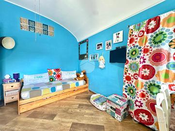 La soluzione si presta a svariate ripartizioni degli spazi poichè internamente non presenta muri portanti, i quali sono esclusivamente quelli perimetrali. I soffitti del piano terra e del piano primo sono caratterizzati da volte originali del periodo di costruzione. I muri in pietra, aiutano ad avere gli ambienti freschi in estate e caldi durante il periodo invernale. Presente predisposizione per l'aria condizionata anche nella zona giorno. L'area esterna privata è suddivisa da un piccolo giardino e da una parte pavimentata, adatta per .