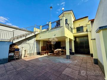 Il piano terra ospita spazi accessori molto pratici: un ampio locale adibito a dispensa e cucina estiva, un ulteriore bagno e l'ampio garage, tutti con affaccio diretto sul cortile interno completamente pavimentato, che garantisce privacy e vivibilità esterna.