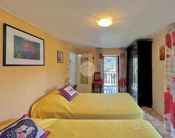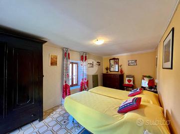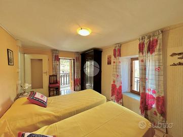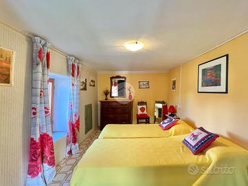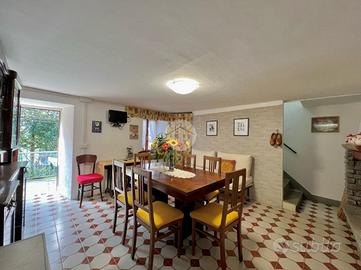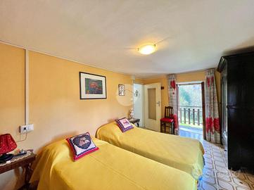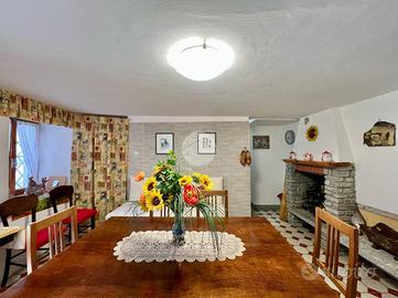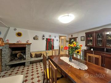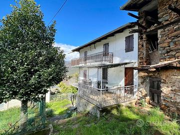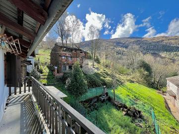 In un contesto di tranquillità ed immersi nel verde delle montagne delle Vallei di Lanzo, in possizione dominante sulla valle con vista panoramica sul Rocciamelone, più precisamente in frazione Monbasso di Viù al confine con Germagnano casa semindipendente su due piani con giardino privato.