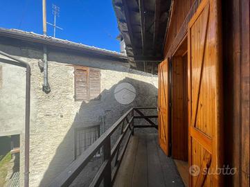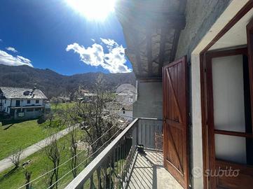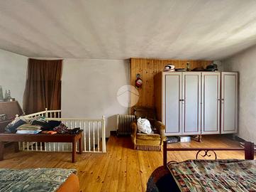 La casa, sita in un contesto tranquillo si compone al piano primo di un soggiorno-cucina con bagno e al piano superiore, raggiungibile con la scala in legno, una grande camera da letto con doppio balcone, uno che affaccia sull'interno frazione l'altro che vanta di vista panoramica sulla vallata.