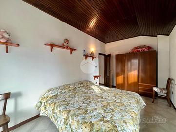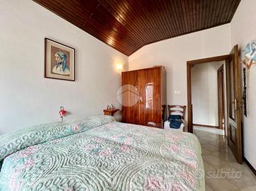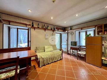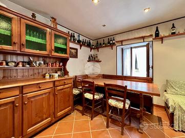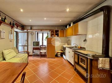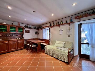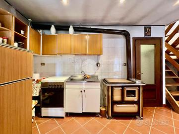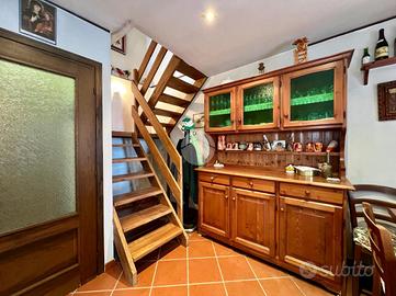 La porta d'ingresso al piano terreno permette di accedere alla zona giorno, composta da un unico ambiente e riscaldabile tramite la stufa a legna; passando per il disimpegno/antibagno si accede al bagno finestrato con doccia. Salendo la scala interna in legno si raggiunge il piano primo, adibito a zona notte, dove si trovano le due camere da letto matrimoniali ed il balcone.