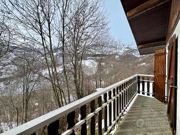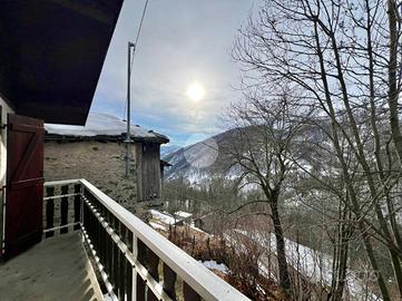 In frazione Cramoletti Superiori di Viù, a circa 1100 metri di altitudine, casa semindipendente libera su tre lati con piccolo cortiletto privato e terreno adiacente semi pianeggiante di 110 mq.