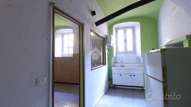 In centro paese, casa semindipendente strutturata su due livelli attualmente non collegati tra di loro. Il piano terra ospita la zona giorno, composta da angolo cottura e soggiorno. Invece, al piano primo è presente la zona notte costituita da due camere da letto con accesso sul balcone dal quale si ha uno scorcio di vista lago e un locale di sgombero che può essere utilizzato per ricavare la terza camera. Completano il piano due bagni di servizio. Inoltre, a fianco della casa vi sono numerosi rustici con due box auto e locali di deposito di 150 mq circa per piano che danno la possibilità di poter ampliare la zona abitativa. Viene venduto anche un piccolo terreno staccato dalla casa di 400 mq circa.
